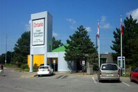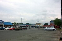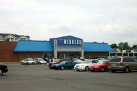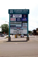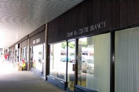 From left to right, Browse a Bit giftshop, Bell Travel Group travel agency, Mighty Dollar dollar store, Niagara Falls Public Library Stamford Centre Branch and Toronto Dominion Canada Trust [TDCT] Bank ;