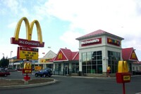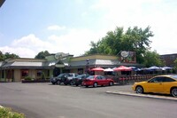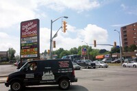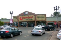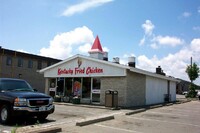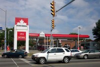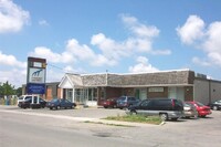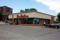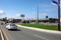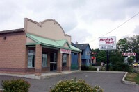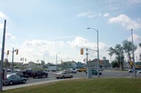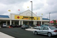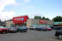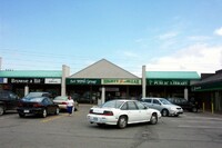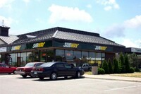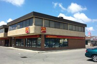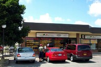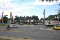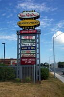 From left to right, Toronto Dominion Canada Trust [TDCT] Bank, Town and Country Cafe, Pizza Pizza restaurant, Cole's Jewellers, The Artful Cookie bakery and Subway Sandwiches and Salads ;