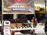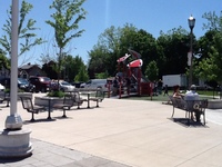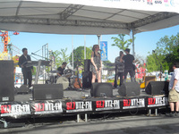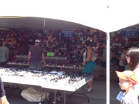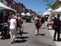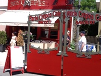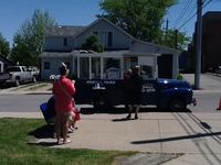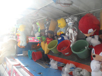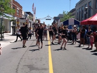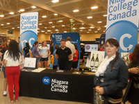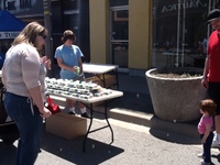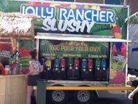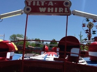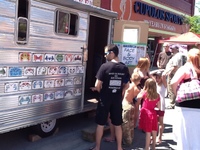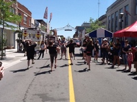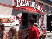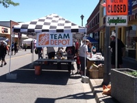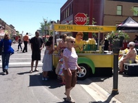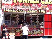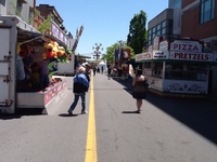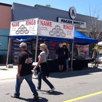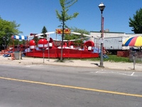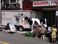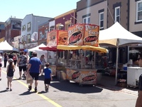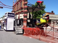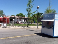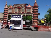 Coupon booth in front of the Dragon Express roller coaster at the intersection of Ontario Avenue and Queen Street. Broderick & Partners LLP, 4625 Ontario Avenue is in the background.