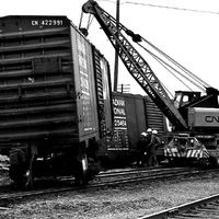 C.N.R. Train Derailment Wreck, Workers Rerailing Cars - Stanley Street & Whirpool Road