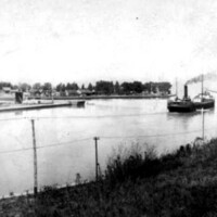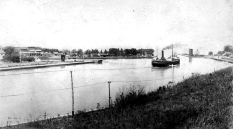 Steam ship leaving Port Dalhousie Harbour and Welland Canal entrance