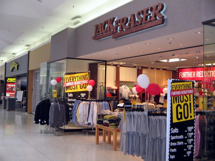 Montrose Road, 7555 - Niagara Square Shopping Centre - Jack Fraser men's clothing store and Sunrise record store