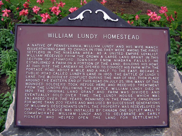 Lundy's Lane, 7500 - Canada One Factory Outlet - William Lundy Homestead plaque