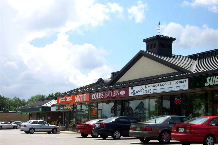- From left to right, Toronto Dominion Canada Trust [TDCT] Bank, Town and Country Cafe, Pizza Pizza restaurant, Cole's Jewellers, The Artful Cookie bakery and Subway Sandwiches and Salads ;