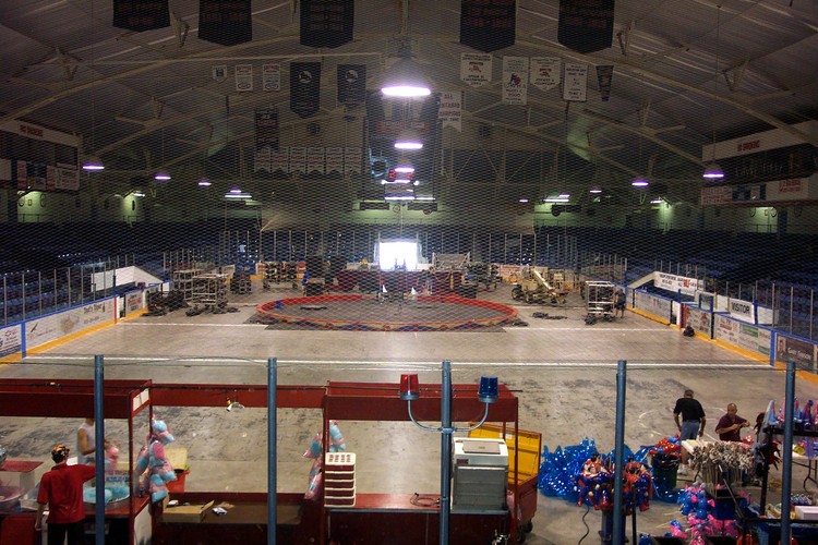 Centre Street, 5145 - Niagara Falls Memorial Arena - preparations for the Shriner's Circus