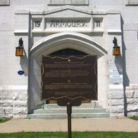 Armoury Street and Victoria Avenue - Niagara Falls Armoury - front door and Niagara Falls Internement Camp plaque