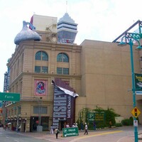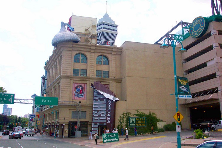 - Skylon tower on the left, Casino Niagara Tower in the background and Casino Niagara parking on the right ;