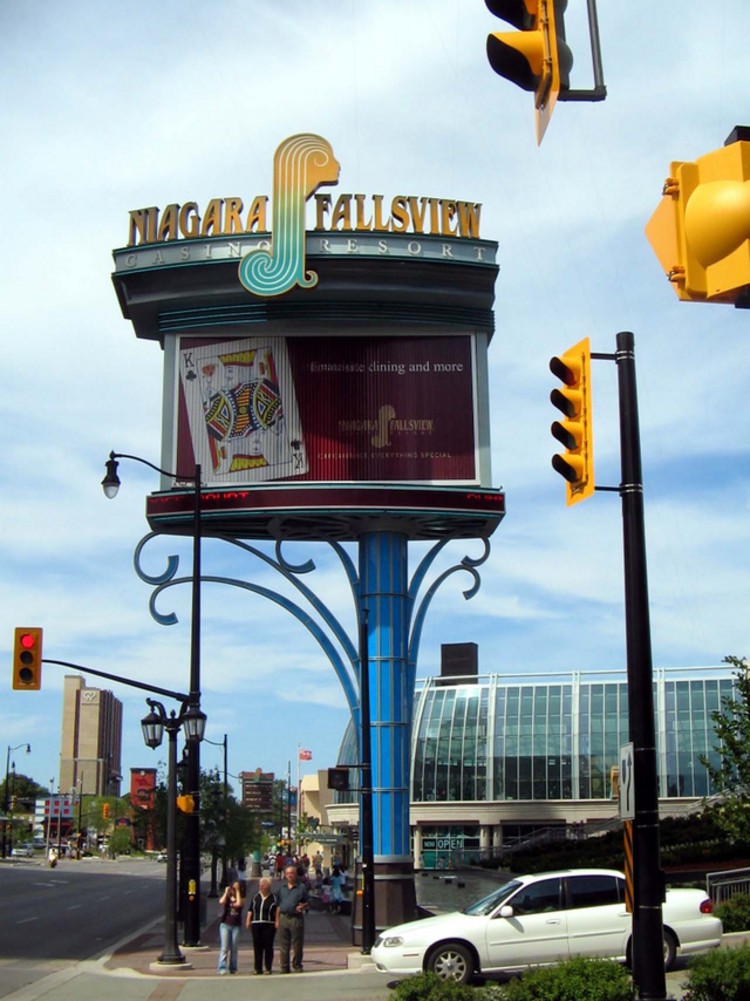 Fallsview Boulevard 6380 Niagara Fallsview Casino Resort advertising sign at the main entrance to the complex
