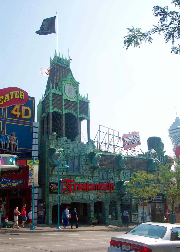 - Ripley's Moving Theater on the left ; Burger King restaurant on the right and Casino Niagara Tower visible on the right ;