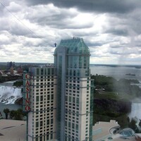 - en-CA These photographs were taken from the Blue Martini Lounge on the 35th floor at the Niagara Falls Hilton Hotel located at 6361 Fallsview Boulevard ; Jay Cochrane spent the summer of 2005 skywalking from the Niagara Falls Hilton Hotel to the Fallsview Casino Resort and also from the Fallsview Casino Resort to the Skylon Tower ;