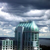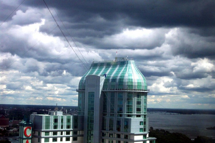 - en-CA These photographs were taken from the Blue Martini Lounge on the 35th floor at the Niagara Falls Hilton Hotel located at 6361 Fallsview Boulevard ; Jay Cochrane spent the summer of 2005 skywalking from the Niagara Falls Hilton Hotel to the Fallsview Casino Resort and also from the Fallsview Casino Resort to the Skylon Tower ;