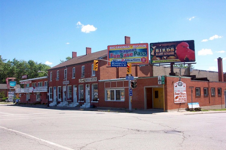 - From left to right, Niagara Parkway Court Motel, Chippawa Computers, Lulu's Antiques Art Collectibles, and Sudda Beer House ; Main Street, Cummington Square and Willoughby Drive intersection ;