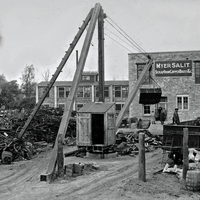 - Myer Salit and his family overseeing the business ; in foreground is a stiff leg derek crane loading a rail car with scrap metal ; location corner of Clark and Robinson Streets ;