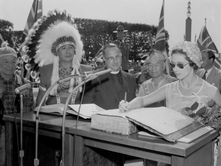 HRH Princess Margaret with representatives of the Six Nations Council in Oakes Garden Theatre
