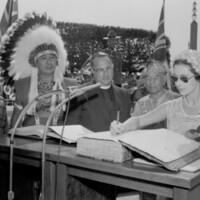 - HRH Princess Margaret with representatives of the Six Nations Council in Oakes Garden Theatre