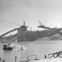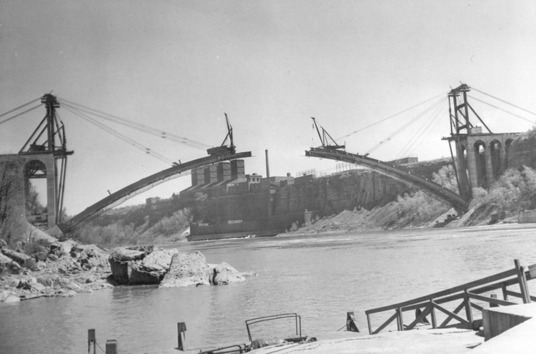 - Construction of the Rainbow Bridge - spans in place on Canadian and American sides
