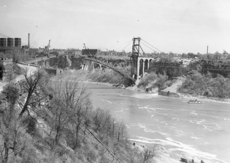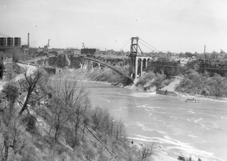 - Construction of the Rainbow Bridge - spans in place on Canadian and American sides