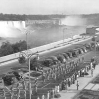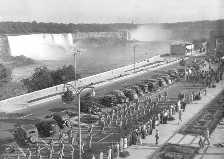- Memorial Arch, American and Horsehoe Falls in background ;