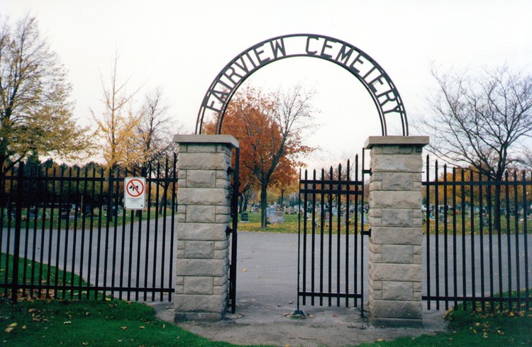 - Entrance to Fairview Cemetery Niagara Falls Canada located at intersection of Morrison Street and Stanley Avenue
