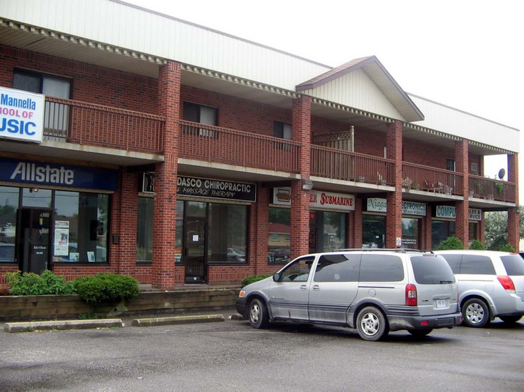 - en-CA L-R - Allstate Auto Insurance, Cardaso Chiropractic and Massage Therapy, Super Submarine Restaurant, Niagara Electronics and Computer Sales and Service.