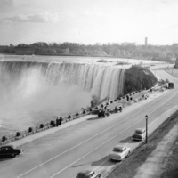 - Horseshoe Falls and the Niagara parkway seen from Queen Victoria park, Table Rock House in background