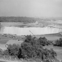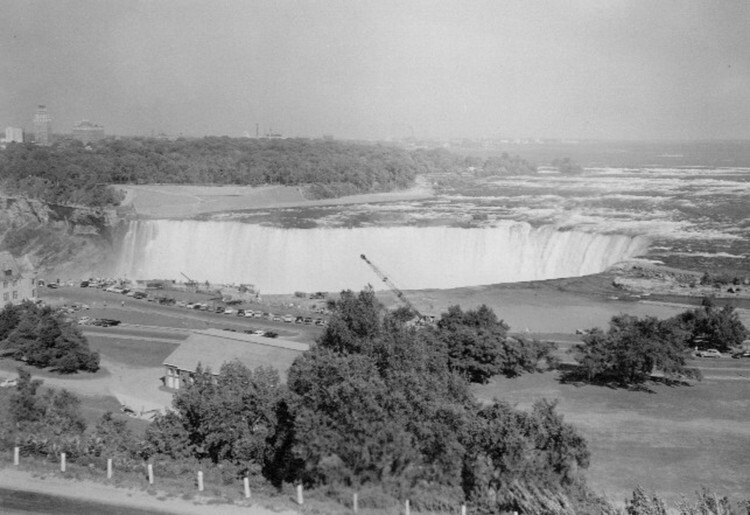 - Construction on the Canadian side of the Horseshoe Falls at Niagara, Table Rock House (centre left)
