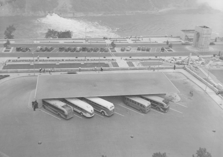 Union Bus Terminal Niagara Falls, Niagara Parkway and Niagara River in background