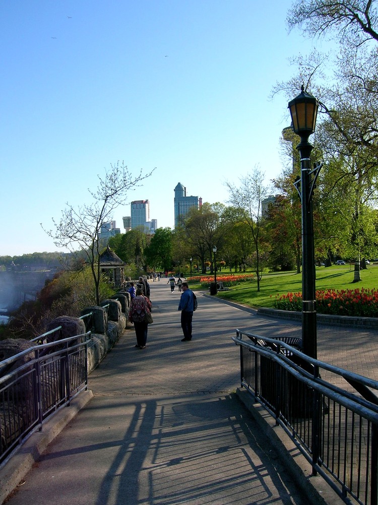 - Early morning walkers in Queen Victoria Park at Niagara Falls