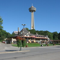 - en-CA Edgewaters Tap and Grill with the Skylon Tower and the yellow elevator in the background