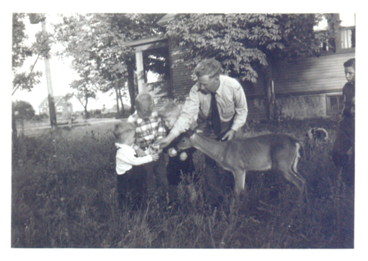 - Conservation Officer A Roy Muma of the Ontario Department of Lands and Forests & Fish & Wildlife Niagara area showing a deer to his grandsons Keith, Allan and David