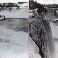 - en-CA American Falls and Horseshoe Falls in winter.