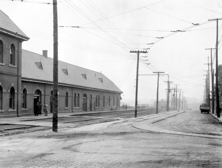- en-CA Showing the poles that must be removed to permit widening of the pavement. Train Station is seen on the left.