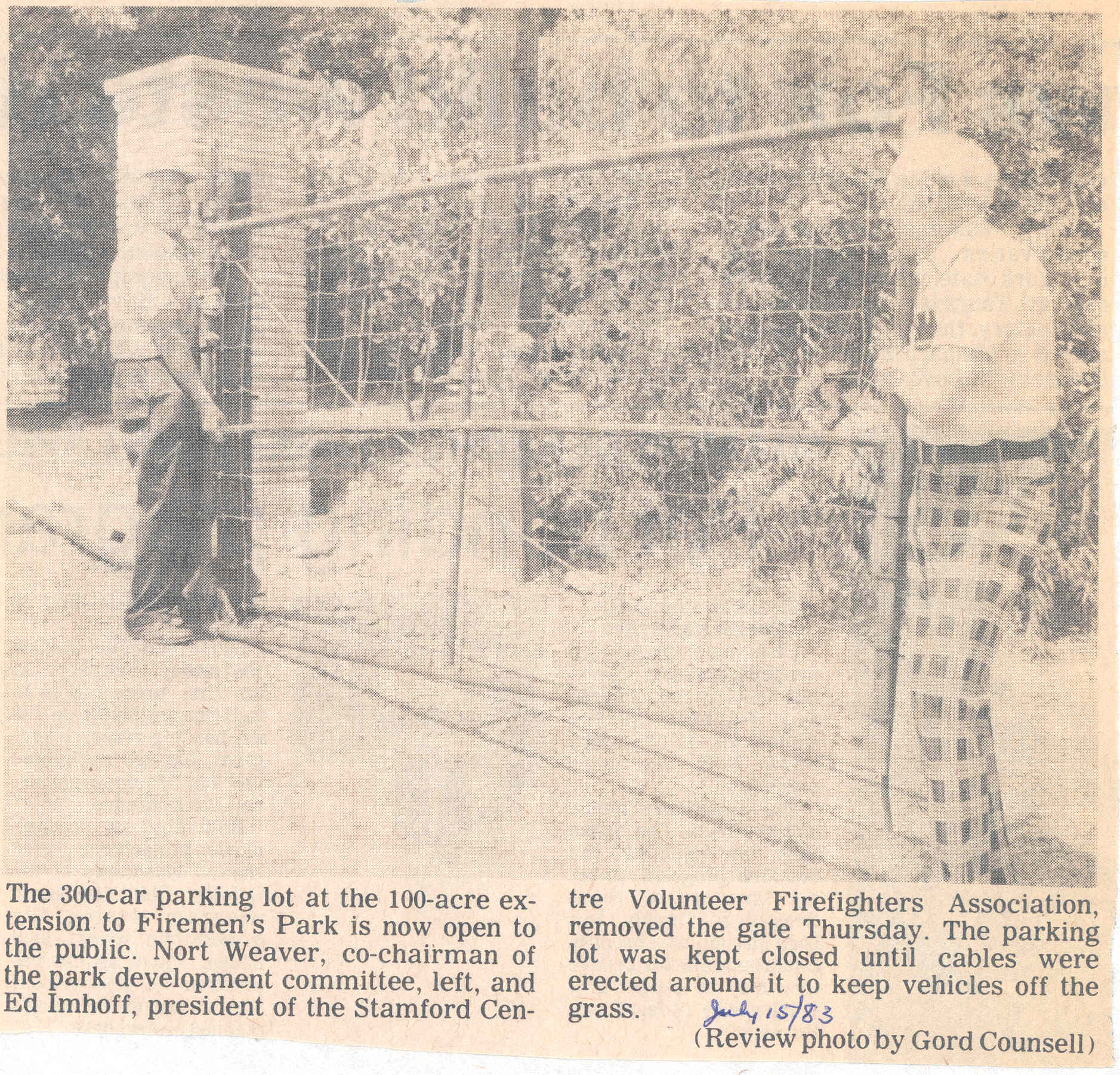 - en-CA Firemen's Park / Weaver, Nort / Imhoff, Ed / Stamford Centre Volunteer Firefighters Association / July 15, 1983