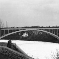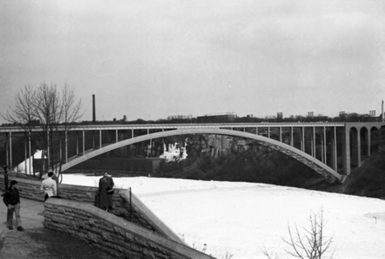 en-CA Rainbow Bridge in the winter with the ice bridge underneath