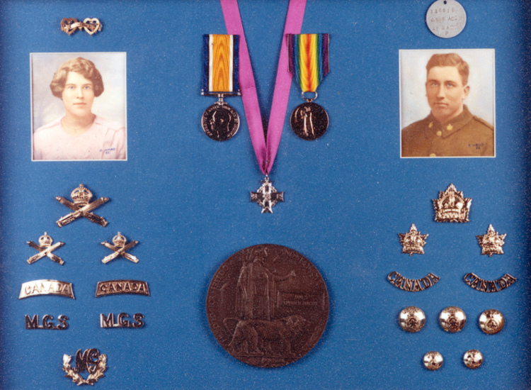 - en-CA Military medals and insignia, including a photograph of Private James Harold Bacon and his sister Vera Lillian. Private James Harold Bacon was a member of theCanadian Machine Gun Corps. who died on the 16th of May 1918.