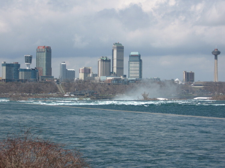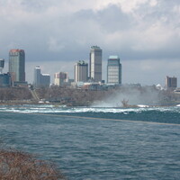 - en-CA Marriott Hotels, Radisson Hotel, Tower Hotel, Embassy Suites Hotel, Incline Railway, Oakes Hotel, Hilton Hotes, Fallsview Casino Resort, Skylon Tower, DoubleTree Hotel and the Niagara Skywheel are visible