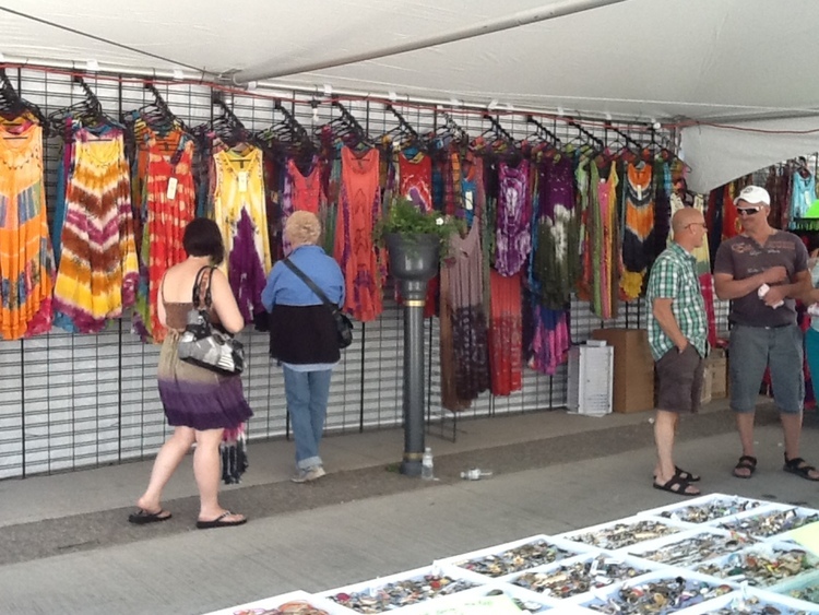 - en-CA Tie dye clothing and jewellery booth on the south side of Queen Street between Ontario Avenue and St. Clair Avenue.