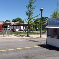 - en-CA "Tickets" booth in front of a carnival ride on Queen Street near the downtown park.
