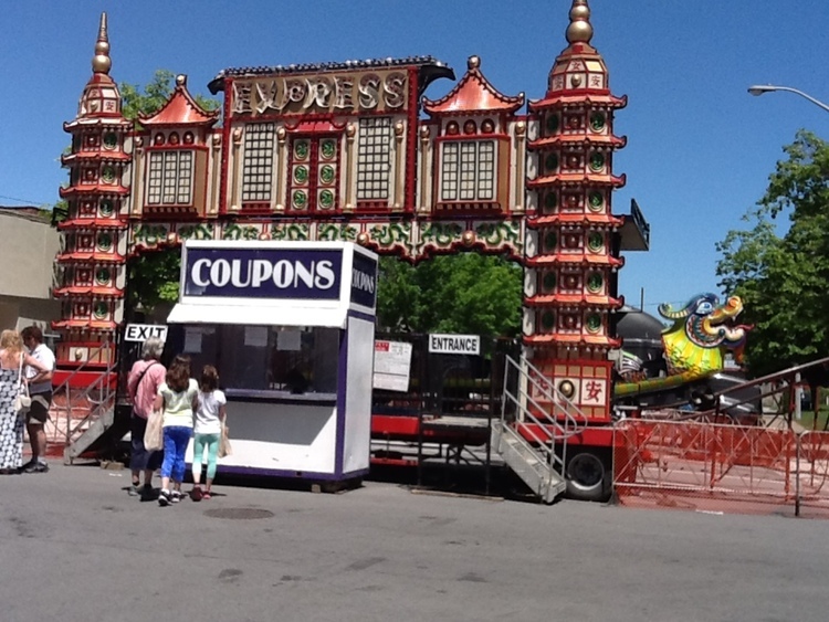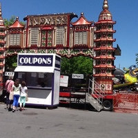 - en-CA Coupon booth in front of the Dragon Express roller coaster at the intersection of Ontario Avenue and Queen Street.