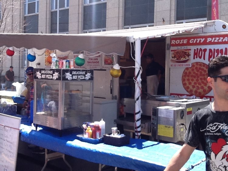 - en-CA Pizza truck in front of the post office on Queen Street.