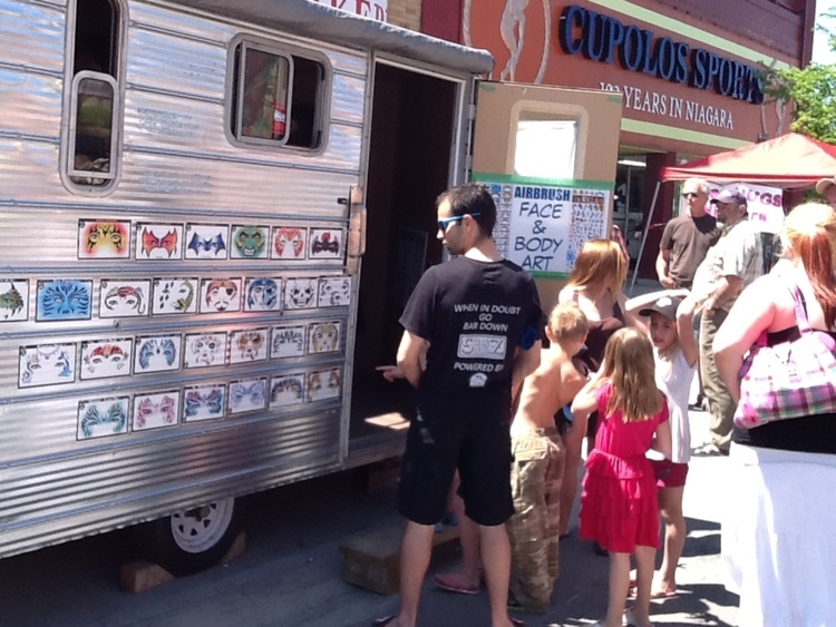 - en-CA Airbrush Paint and Body Art truck on Queen Street near Cupolos Sports.