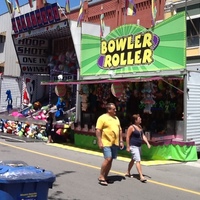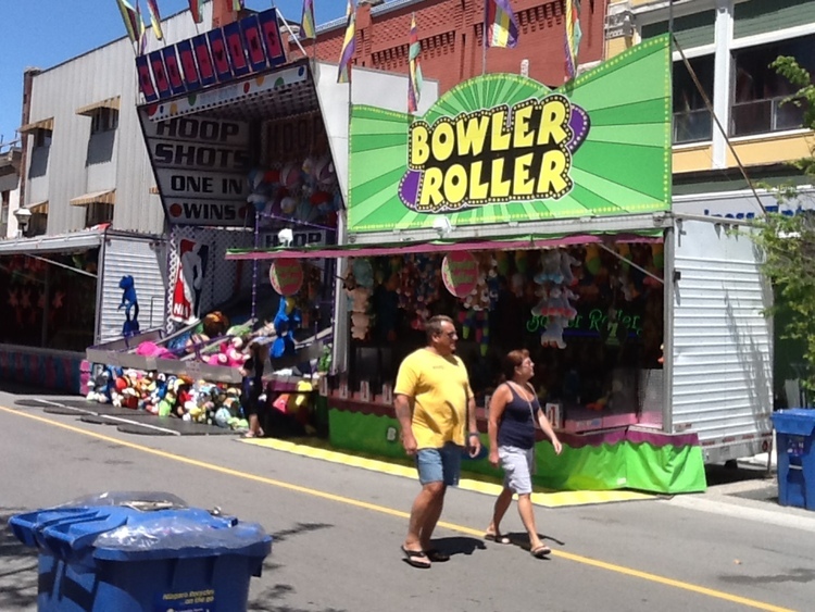 - en-CA Bowler Rowler and Shoot Hoops booths on Queen Street.
