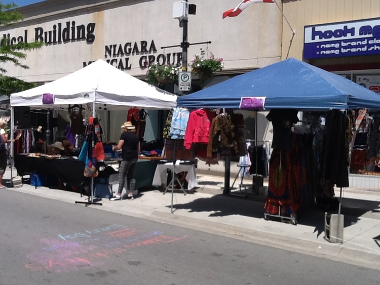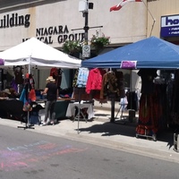 - en-CA Tents with items for sale on Queen Street in front of the Queen Street Medical Building.