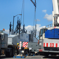 Lundy's Lane Archway Installation - Lowering the Sign, 08