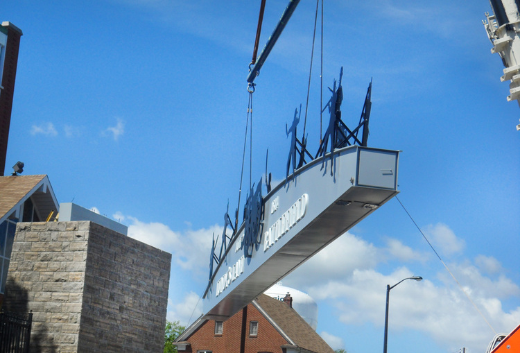 Lundy's Lane Archway Installation - Aligning the Sign, 02