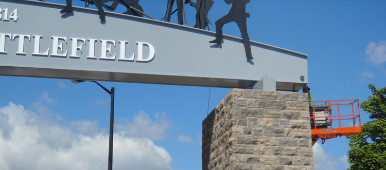 Lundy's Lane Archway Installation - Aligning the Sign, 33