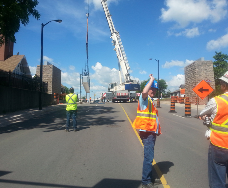 Lundy's Lane Archway Installation - Lifting the Sign - Far, 02