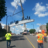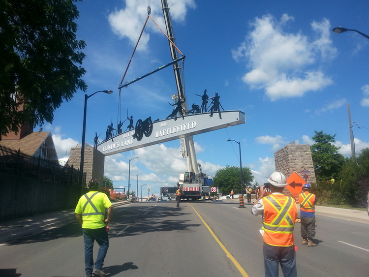 Lundy's Lane Archway Installation - Aligning the Sign - Far, 02