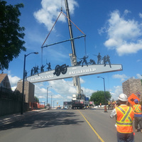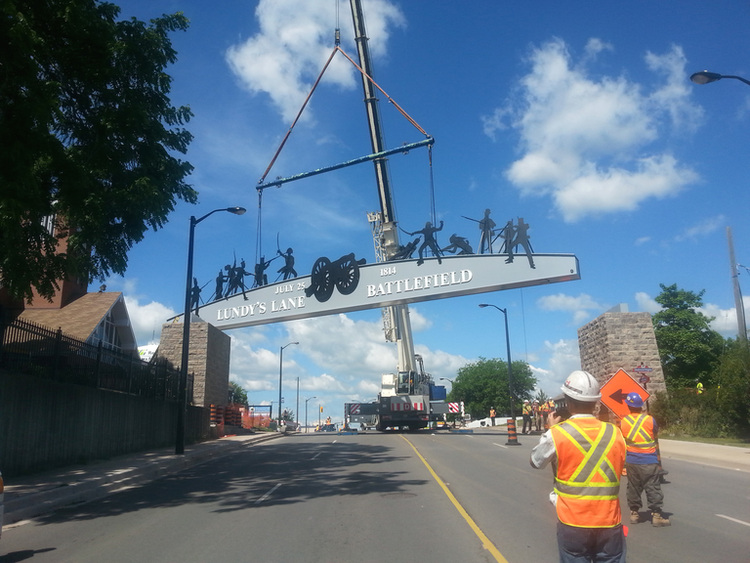 Lundy's Lane Archway Installation - Aligning the Sign - Far, 03