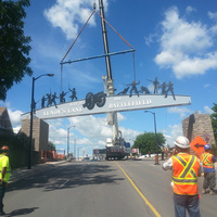 Lundy's Lane Archway Installation - Aligning the Sign - Far, 04